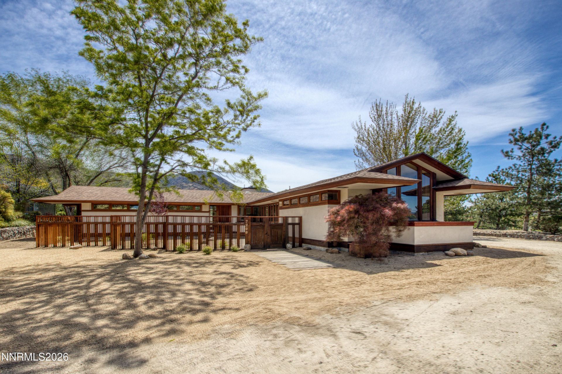 UNIQUE Hidden Valley architectural GEM. One of a limited number of Reno homes designed and built by William Morrison, a Taliesin-trained apprentice under Frank Lloyd Wright. This 3-bedroom, 3-bath residence highlights exceptional craftsmanship and timeless Prairie-style design. Situated on a spacious corner lot backing to Hidden Valley Regional Park, the property captures sweeping mountain and park views. Clean lines and organic materials define the home, with extensive use of stone, wood, and glass. Skylights and dramatic mitered windows flood the interior with natural light, highlighting polished concrete floors with radiant heat, cathedral ceilings, and broad overhanging eaves. Rich redwood trim and redwood cabinetry add warmth and character throughout. The sunken living room serves as the heart of the home, anchored by a striking stone wood-burning fireplace. Designed for year-round efficiency, the home offers comfort in both summer and winter. Inspired by Frank Lloyd Wright's philosophy, the design emphasizes a seamless connection to the surrounding landscape. Exterior features are equally distinctive, with rare redwood trim, planter boxes, and freshly painted stucco. Outdoor spaces include a fenced front courtyard, several small covered patios, and stellar views, creating a true indoor-outdoor living experience. Fully finished garage. A rare opportunity to own a piece of Reno architectural history. PRICELESS.